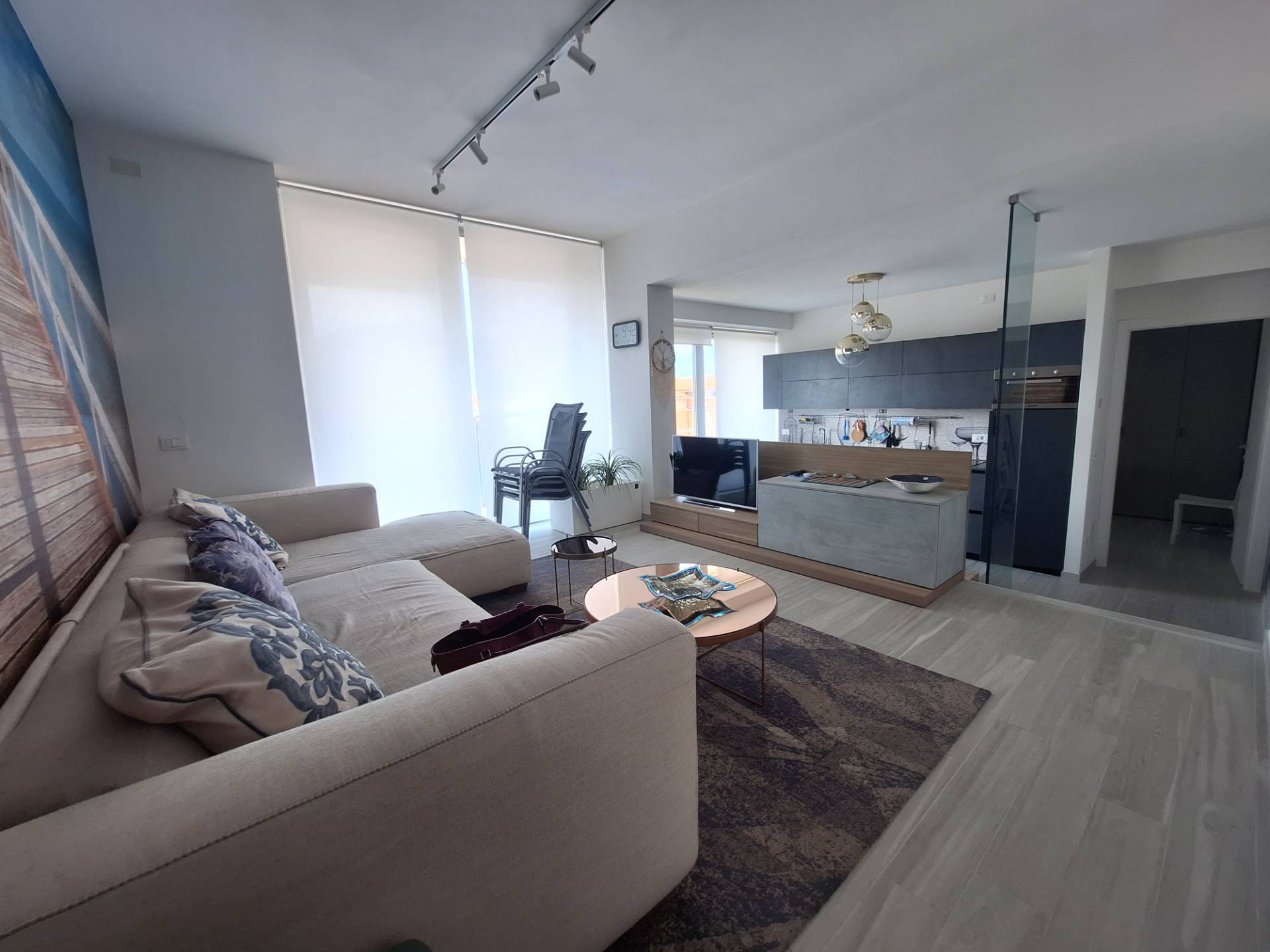 Nel pieno centro di Loano, in contesto residenziale di recente costruzione, esclusivo e riservato, propongo un Appartamento di assoluto pregio situato al quarto piano servito da ascensore con accesso da terra, soluzione ideale per chi ricerca comfort, rappresentanza e una posizione strategica a pochi passi da tutti i servizi e dal mare. L'ingresso si apre su un raffinato open space dove zona living e cucina a vista dialogano in un ambiente ampio, armonioso e inondato di luce naturale grazie all'ottima esposizione e agli sfoghi esterni; le due camere matrimoniali garantiscono metrature generose e vivibilità reale, mentre il bagno finestrato conferma la qualità progettuale dell'immobile. Due terrazzi vivibili impreziosiscono la proprietà, offrendo uno scorcio di vista mare che valorizza ulteriormente l'esperienza abitativa. Le finiture sono moderne e ricercate, gli arredi inclusi sono nuovissimi e di alto livello, pronti per essere vissuti senza alcun intervento. Dotato di impianto di climatizzazione in tutti gli ambienti, riscaldamento autonomo a pavimento e classe energetica A1, l'Appartamento coniuga efficienza, comfort e contenimento dei consumi. Completa la proprietà un comodo box auto incluso nel prezzo, elemento raro e determinante in posizione così centrale. Soluzione perfetta come prima abitazione di rappresentanza o come casa vacanze di fascia alta, per chi desidera un immobile recente, luminoso e immediatamente pronto all'uso in una delle località più apprezzate della Riviera Ligure.